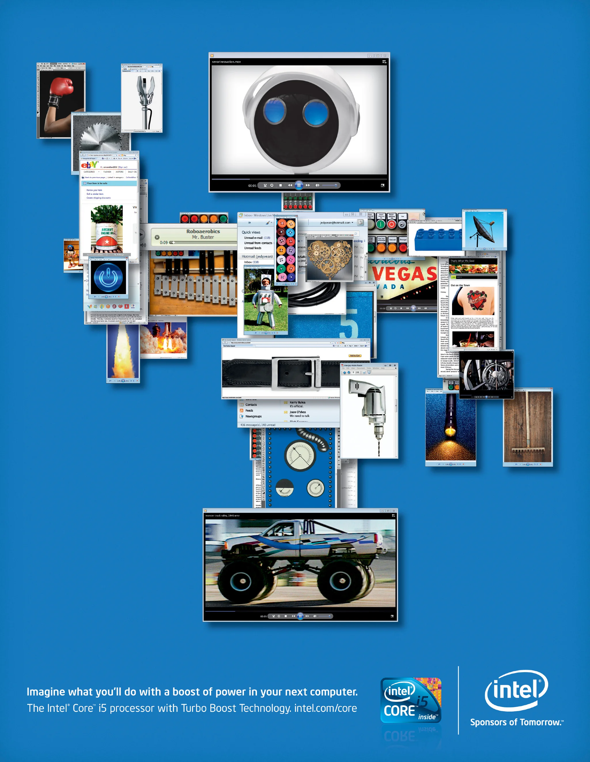 Print - We extended the Core i5 campaign in print by creating powerful-themed images out of multiple program windows.